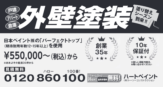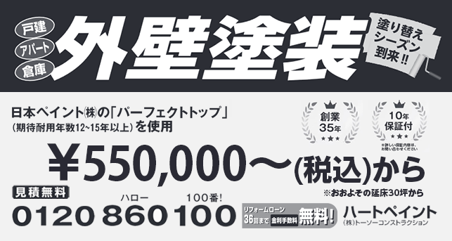 ハートペイントでは中間マージンを排除しているため大量の塗料材を仕入れてコストを大幅に削減することが可能となっております。